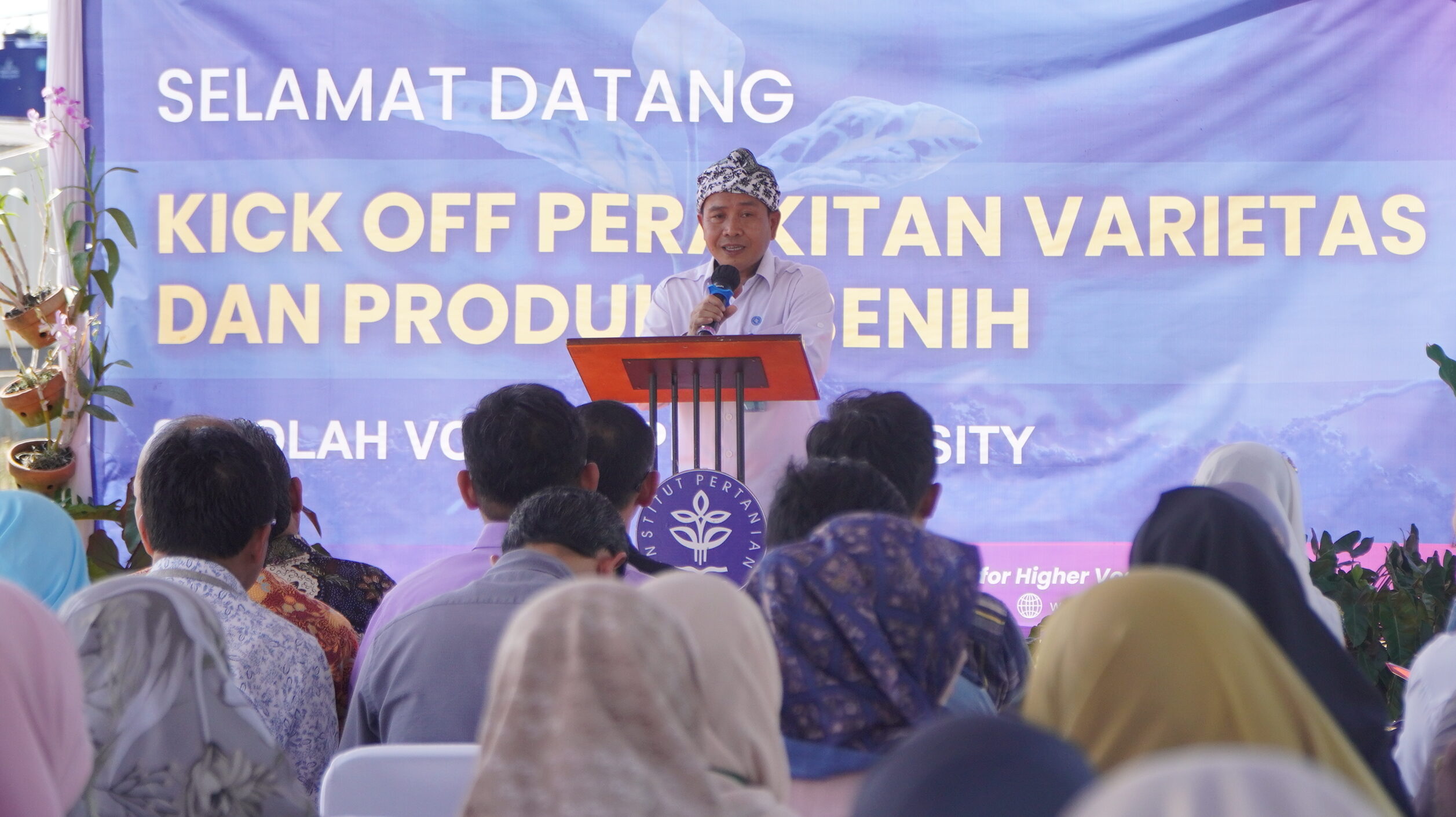 Sekolah Vokasi IPB University meresmikan Program Studi D4 Pemuliaan Tanaman dan Teknologi Benih (PTB) melalui kegiatan Kick Off Perakitan Varietas dan Produksi Benih yang digelar pada Selasa (27/5/2025) di Kawasan Greenhouse SV-IPB. Acara ini menjadi tonggak awal implementasi program studi baru yang berfokus pada penyediaan varietas unggul dan benih bermutu sebagai solusi strategis dalam mendukung ketahanan pangan nasional. Sebagai bentuk nyata peluncuran program tersebut, dilakukan penanaman perdana varietas hortikultura unggulan di lahan Smart Farming Open Field 2.0, sistem pertanian presisi berbasis teknologi yang kini menjadi salah satu andalan inovasi terapan SV IPB.