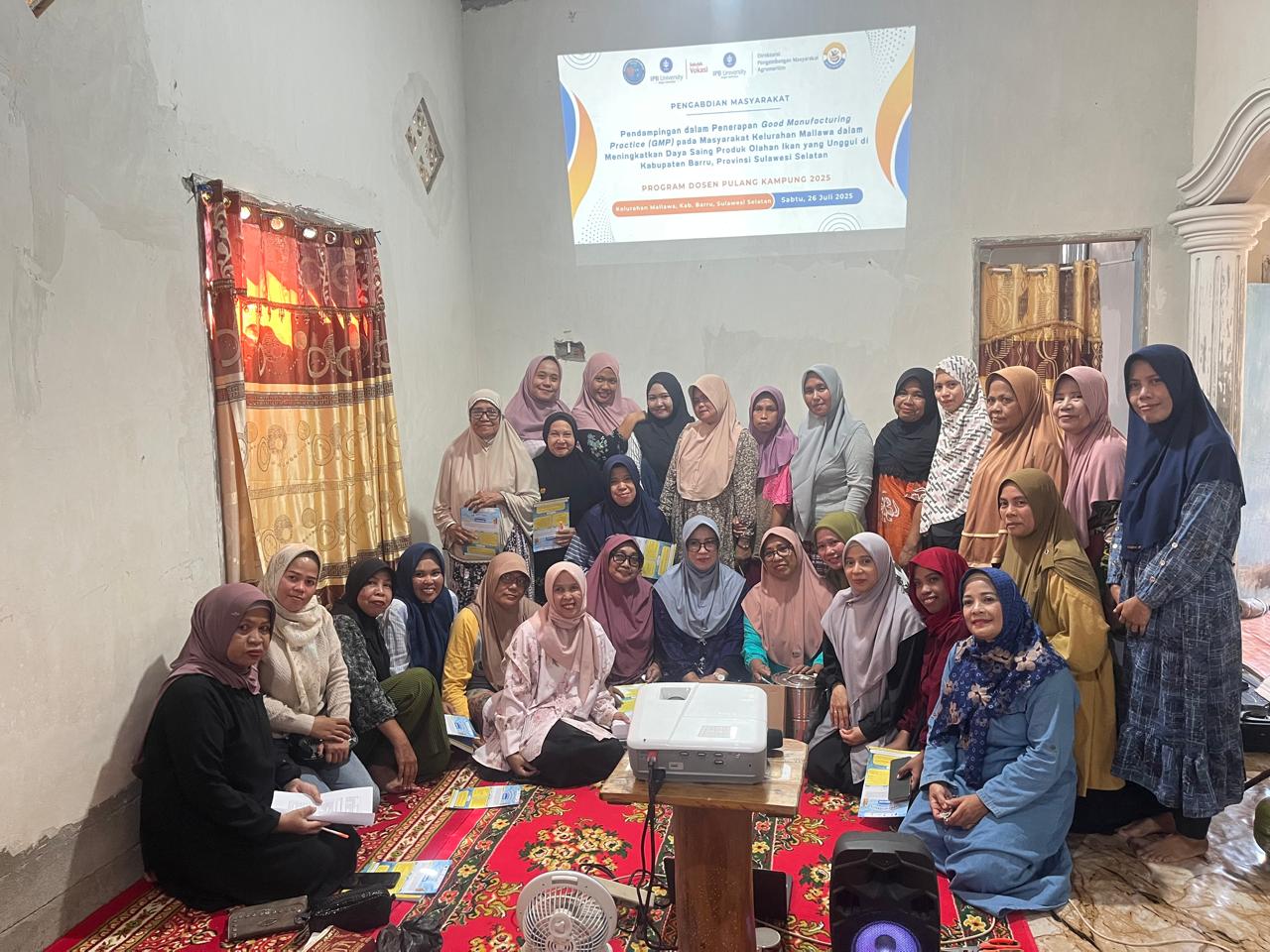 BARRU – Dosen Sekolah Vokasi (SV) IPB University melaksanakan program Dosen Pulang Kampung (Dospulkam) 2025 berupa pelatihan penerapan Good Manufacturing Practice (GMP) bagi masyarakat Kelurahan Mallawa, Kecamatan Mallusetasi, Kabupaten Barru, Sulawesi Selatan pada Kamis–Jumat (26–27/6). Kegiatan ini bertujuan meningkatkan nilai tambah produk olahan ikan serta memperkuat daya saing usaha kecil melalui praktik pengolahan yang higienis, aman, dan sesuai standar.