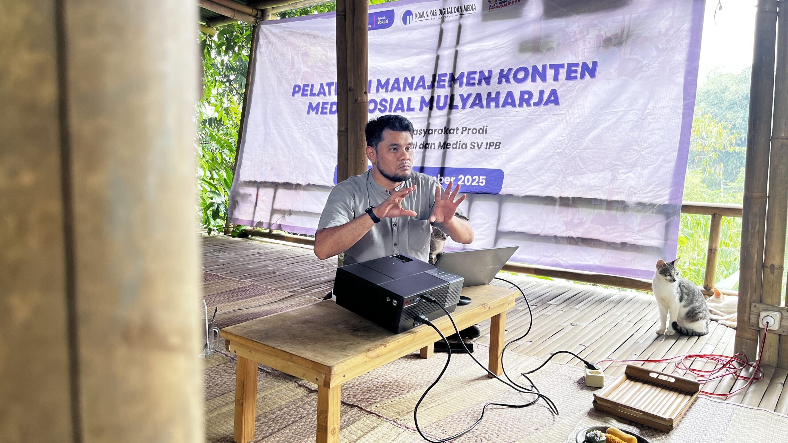 Mulyaharja-Kemampuan menguasai teknik editing audiovisual kini menjadi keterampilan penting bagi para pengelola wisata untuk menghasilkan konten inovatif dan menarik di berbagai platform digital. Menjawab kebutuhan tersebut, dosen Program Studi Komunikasi Digital dan Media, Sekolah Vokasi IPB University, menyelenggarakan program pengabdian masyarakat berupa pelatihan editing audiovisual kepada para pemuda dan pengurus objek wisata di Kelurahan Mulyaharja. Kegiatan berlangsung di Saung Eling, Kelurahan Mulyaharja, pada Senin (29/9).