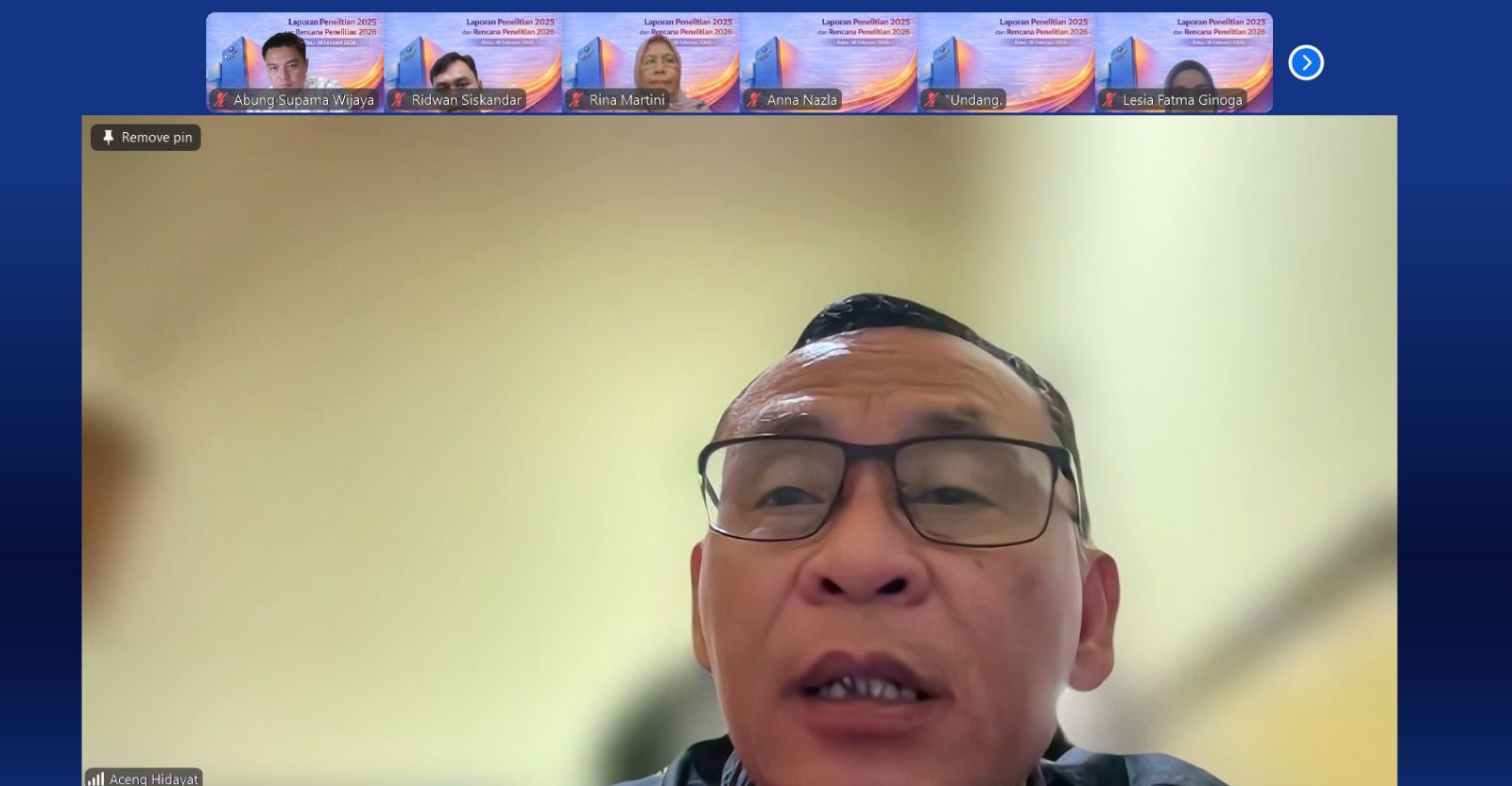 “Penelitian unggulan yang kita kembangkan tidak hanya berorientasi pada pemenuhan target kinerja, tetapi harus benar-benar menjadi penciri dan penguat Program Studi. Setiap riset yang dilakukan perlu mempertegas keunikan dan kompetensi khas prodi, sehingga kontribusinya terhadap penguatan institusi dapat terlihat secara nyata,” ujar Dr. Aceng.